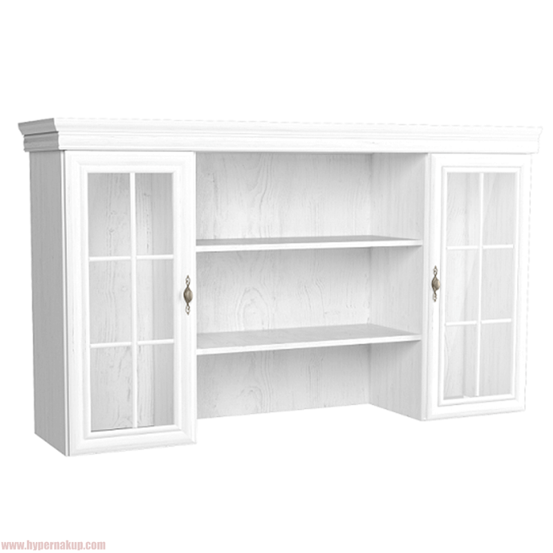 Nadstavec na komodu KORA KN5 je kombinovaný. Úložný priestor poskytujú dve vitrínové skrinky. Skrinky sú dvomi policami rozdelené na tri odkladacie plochy. Dvere vitrín sú so sklom. Stredná časť s dvomi policami je otvorená.