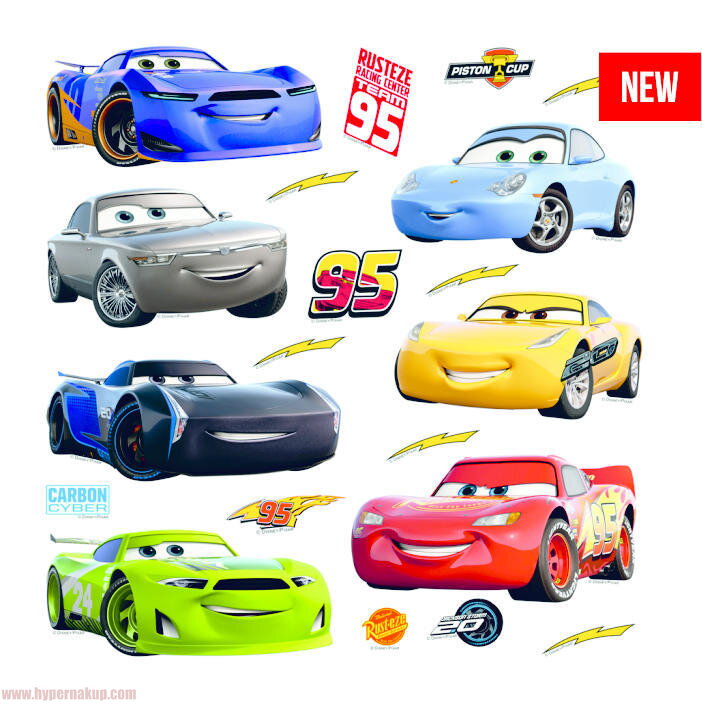 Kvalitné samolepky vhodné pre dekoráciu stien, nábytku v deskej izbe, herni a pod.. Nálepky vhodné pre dotvorenie štýlovej detskej izby s tématikou autíčiek CARS.