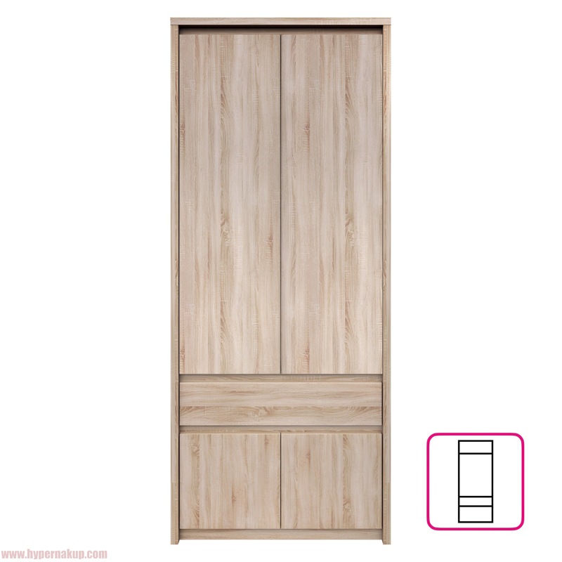 Vo farebnom prevedení dub sonoma, vyrobený z kvalitnej laminovanej drevotriesky. Praktický a viacúčelový, s ktorým si poskladáte každú izbu.Skriňa 4D1S NORTY TYP 2 je priestranná, štvordverová. Je vešiaková, takže ukryje všetky vaše veci. Nad vešiakovou tyčou je polica a na spodnej časti skrine sa nachádza jeden šuplík.